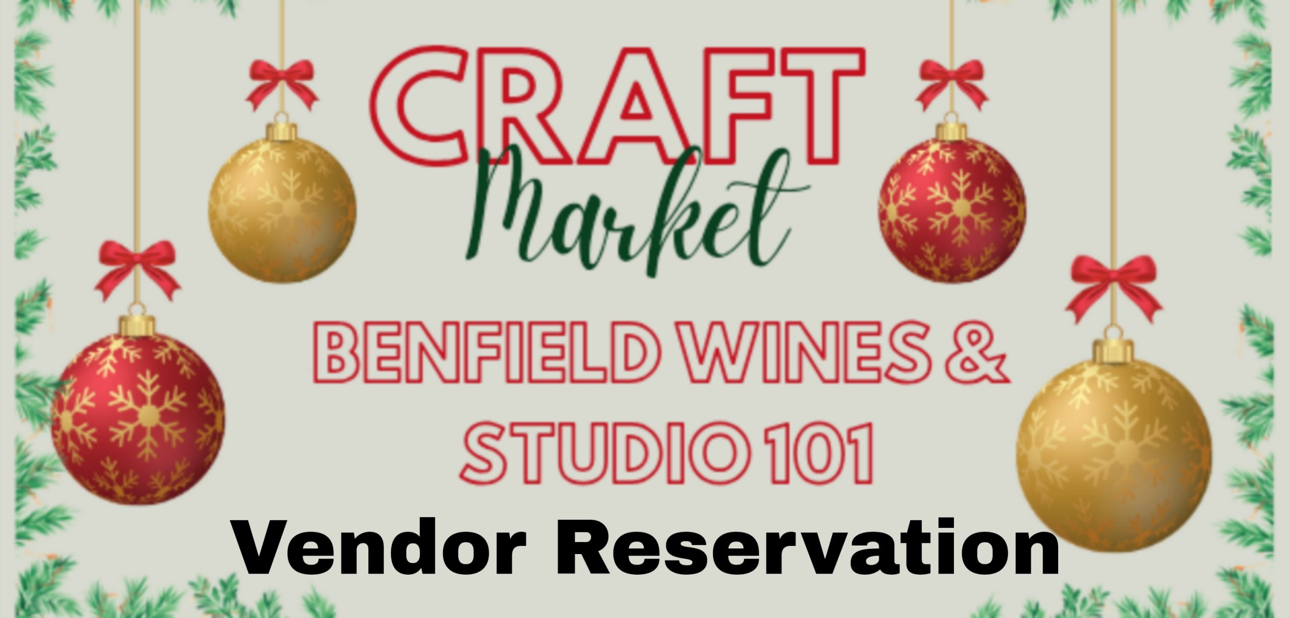 Nov 8 12:00 pm - 4:00 pm Vendor Reservation Craft Market @ Benfield Wines & Studio 101 Get Tickets $27.00 12 tickets left